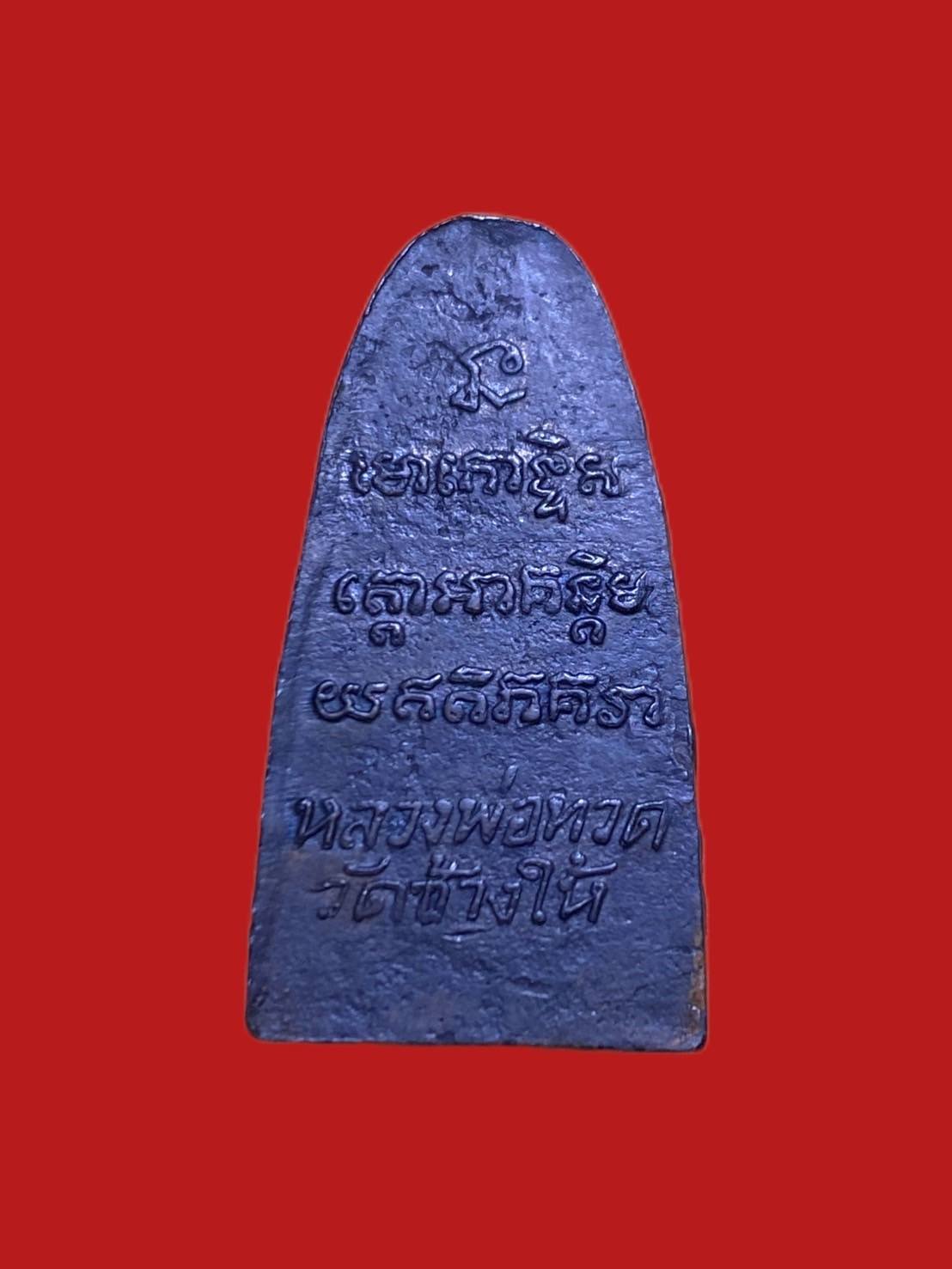 รหัสสินค้า : 306190 หลวงปู่ทวด วัดช้างให้ เตารีดหลังหนังสือเล็ก ปี 2505 พิมพ์ ว จุด เนื้อทองเหลืองรมดำ จ.ปัตตานี