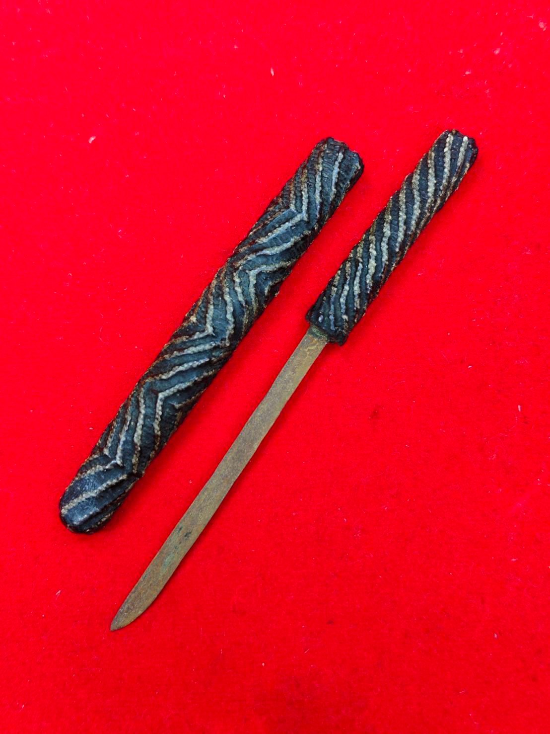 รหัสสินค้า : 306540 ตะกรุดมีดหมอ หลวงปู่ศุข เนื้อโลหะ ด้ามถักเชือกลายเกลียว ฝักถักจระเข้ขบฟัน วัดปากคลองมะขามเฒ่า สร้างปี 2440 ถึง 2466 จ.ชัยนาท
