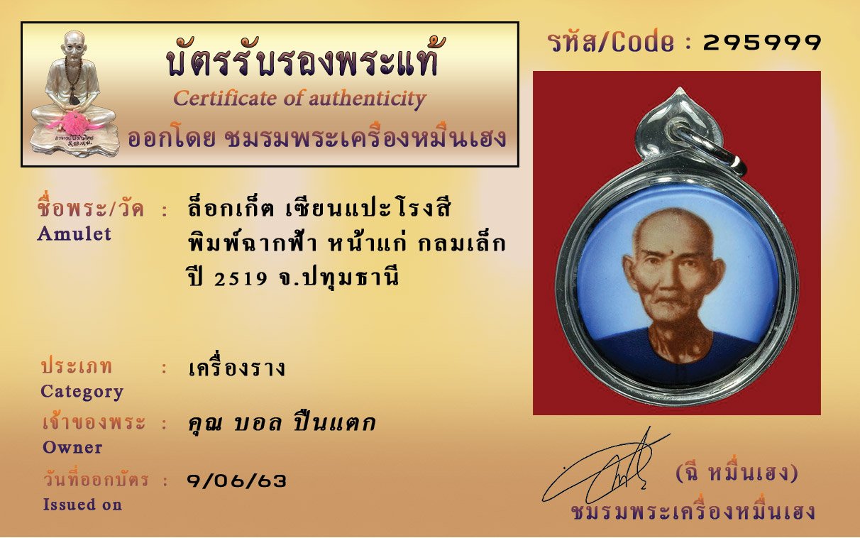 รหัสสินค้า : (295999) ล็อกเก็ต เซียนแปะโรงสี พิมพ์ฉากฟ้า หน้าแก่ กลมเล็ก ปี 2519 จ.ปทุมธานี