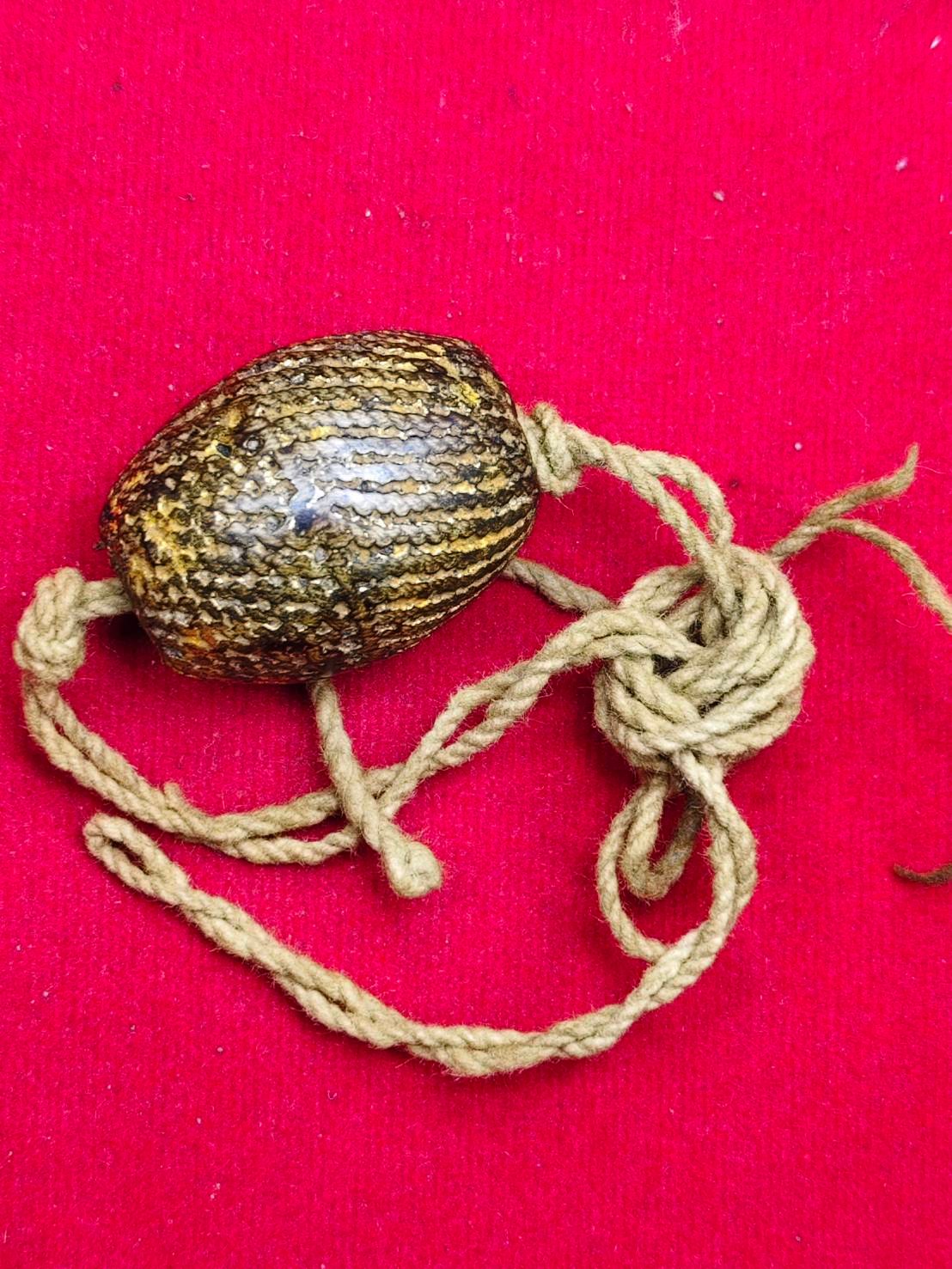 รหัสสินค้า : 306674 ลูกสะกด หลวงปู่เอี่ยม วัดหนังราชวรวิหาร เนื้อ ตะกั่วพอกผงถักเชือก สร้างปี 2443-2469 จ.กรุงเทพมหานคร