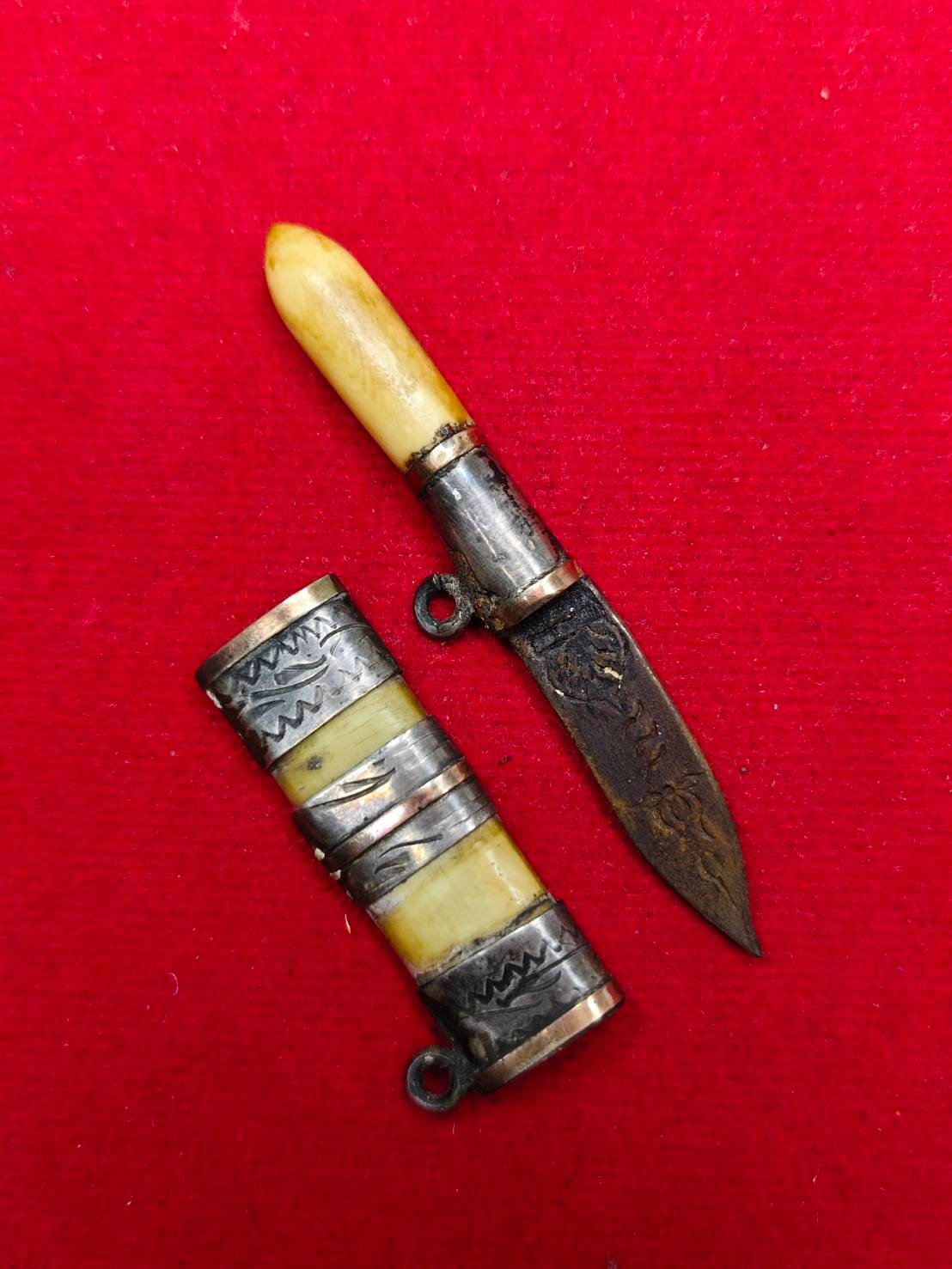 รหัสสินค้า : 306799 มีดหมอสาริกา หลวงพ่อเดิม ใบมีด เนื้อโลหะ ด้ามงา-ฝักงา แหนบเงินและนาคตลอดเล่ม พุทธศักราช 2470-2494 วัดหนองโพธิ์ จ.นครสวรรค์