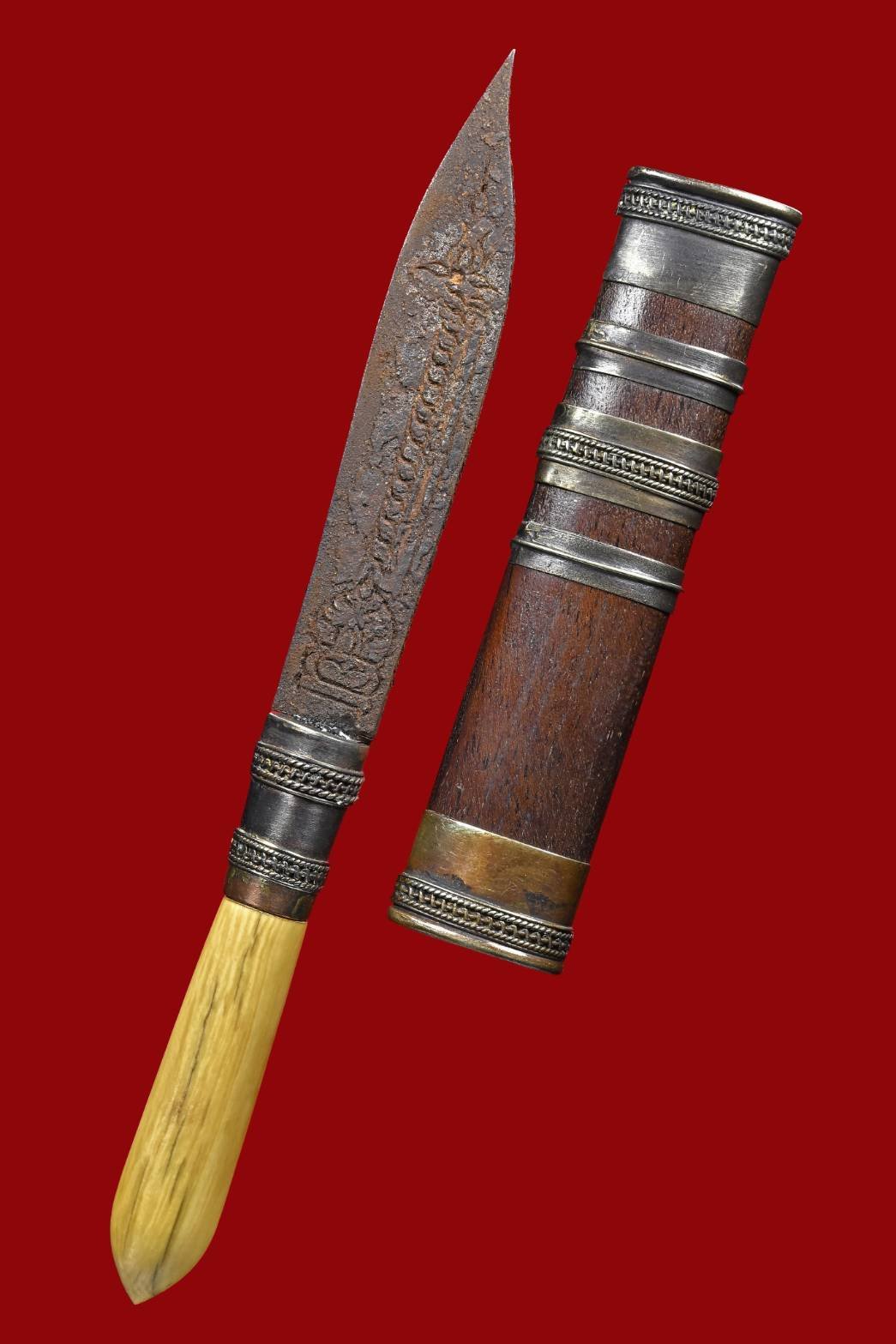 รหัสสินค้า : 307005 มีดหมอหลวงพ่อเดิม ด้ามงา-ฝักไม้ ใบมีดเนื้อโลหะ พุทธศักราช 2470-2477 วัดหนองโพธิ์ จ.นครสวรรค์