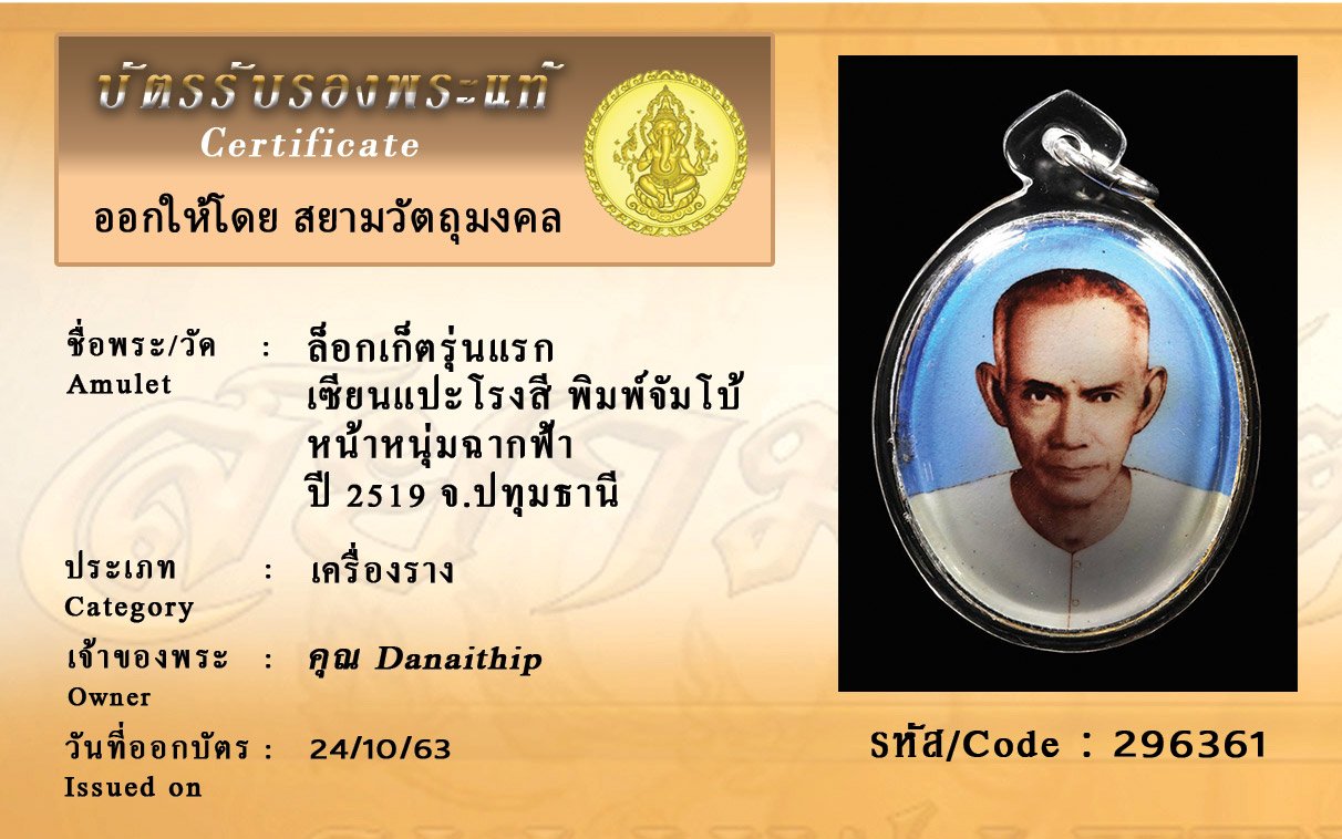 รหัสสินค้า : 296361 ล็อกเก็ตรุ่นแรก เซียนแปะโรงสี พิมพ์จัมโบ้ หน้าหนุ่มฉากฟ้า ปี 2519 จ.ปทุมธานี