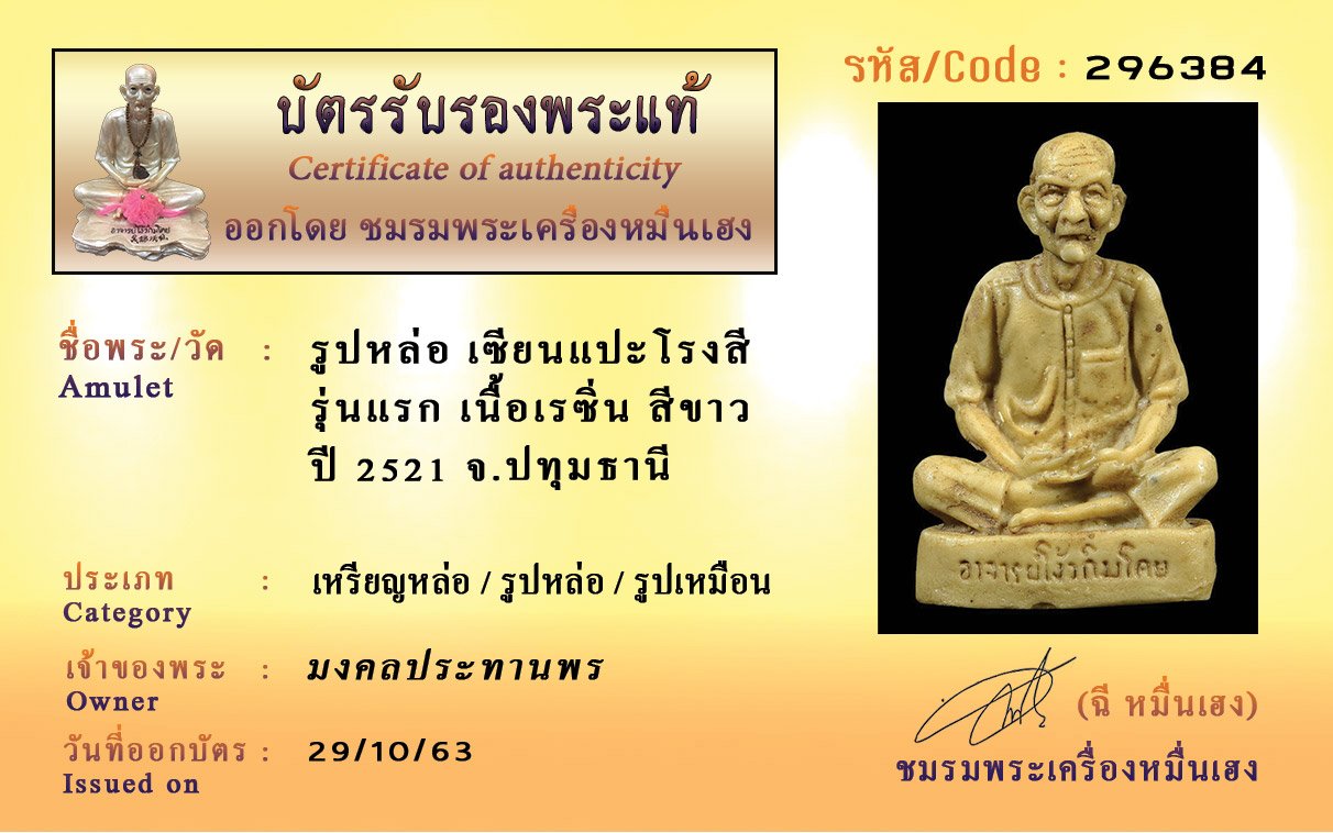 รหัสสินค้า : 296384 รูปหล่อ เซียนแปะโรงสี รุ่นแรก เนื้อเรซิ่น สีขาว ปี 2521 จ.ปทุมธานี