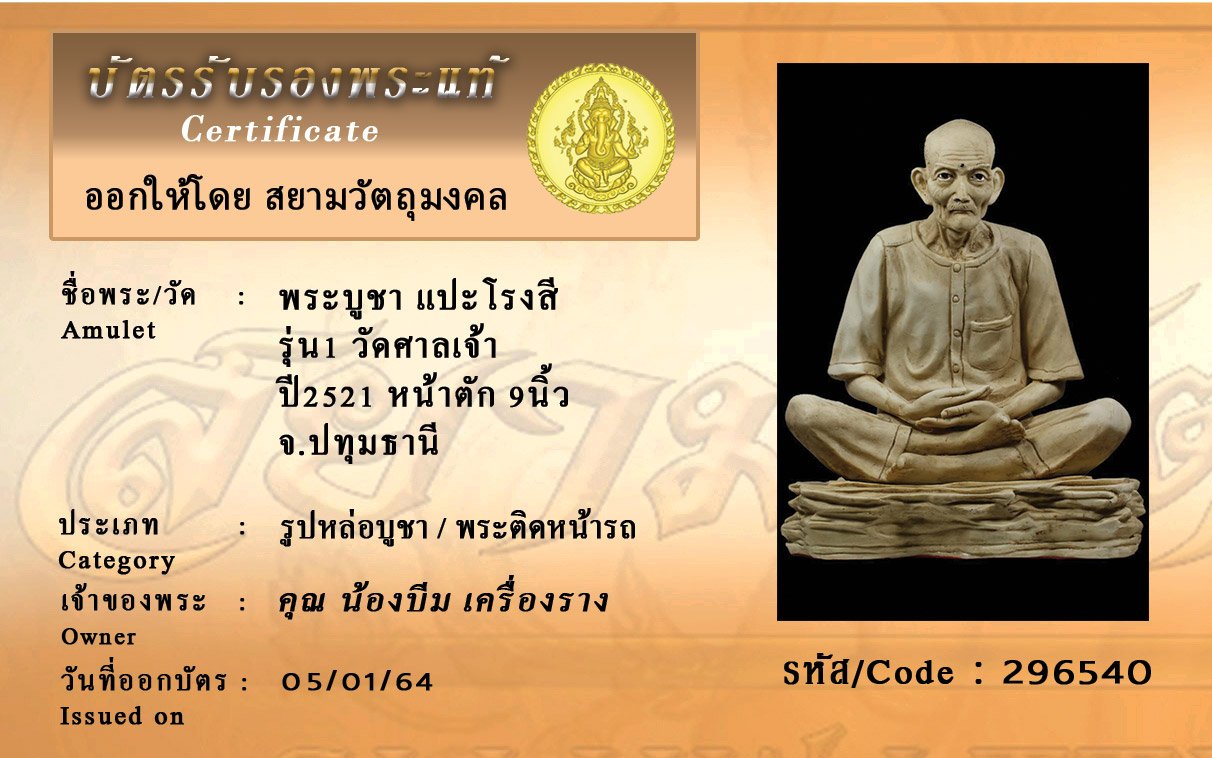 ค้นหาพระ พร้อมบัตรรับรองพระแท้