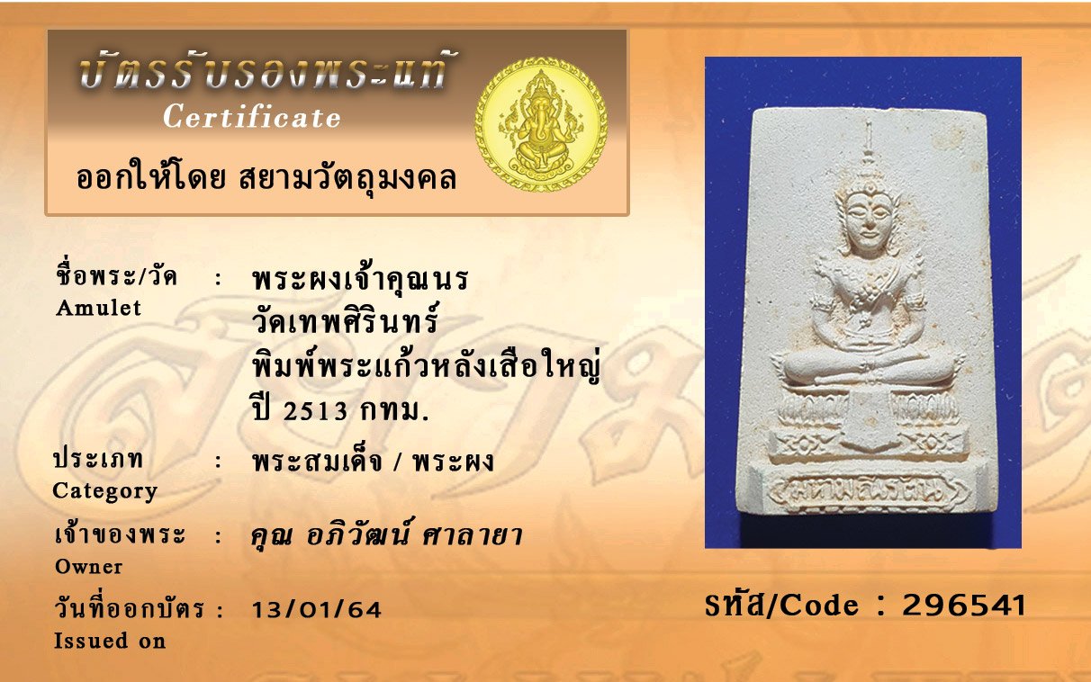 รหัสสินค้า : 296541 พระผงเจ้าคุณนร วัดเทพศิรินทร์ พิมพ์พระแก้วหลังเสือใหญ่ ปีพศ 2513 กทม.