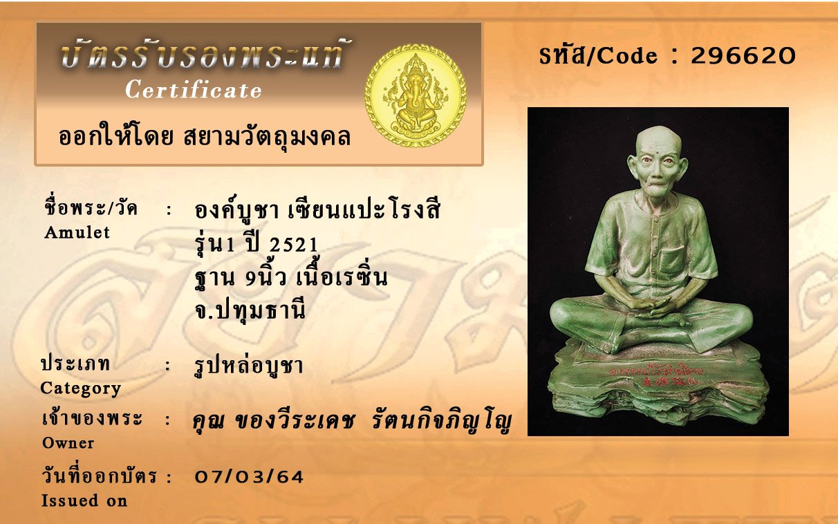 รหัสสินค้า : 296620 องค์บูชา เซียนแปะโรงสี รุ่น1 ปี 2521 ฐาน 9นิ้ว เนื้อเรซิ่น จ.ปทุมธานี