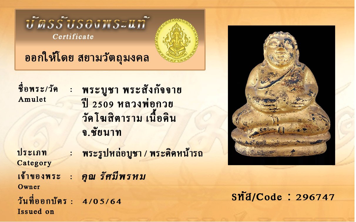 รหัสสินค้า : 296747 พระบูชา พระสังกัจจาย ปี 2509 หลวงพ่อกวย วัดโฆสิตาราม เนื้อดิน จ.ชัยนาท