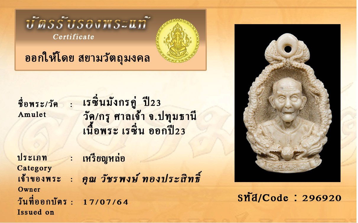 รหัสสินค้า : 296920 เรซิ่นมังกรคู่ ปี23 วัด/กรุ ศาลเจ้า จ.ปทุมธานี เนื้อพระ เรซิ่น ออกปี23