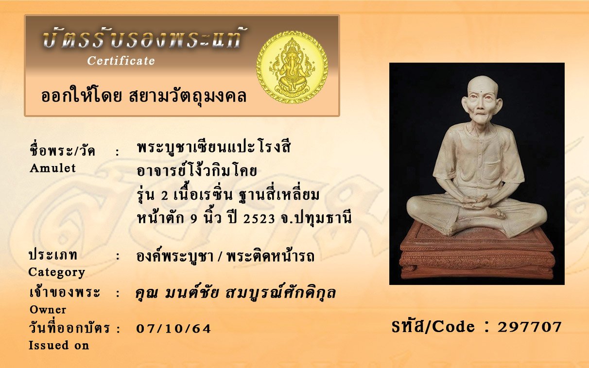 รหัสสินค้า : 297707 พระบูชาเซียนแปะโรงสี อาจารย์โง้วกิมโคย รุ่น 2 เนื้อเรซิ่น ฐานสี่เหลี่ยม หน้าตัก 9 นิ้ว ปี 2523 จ.ปทุมธานี