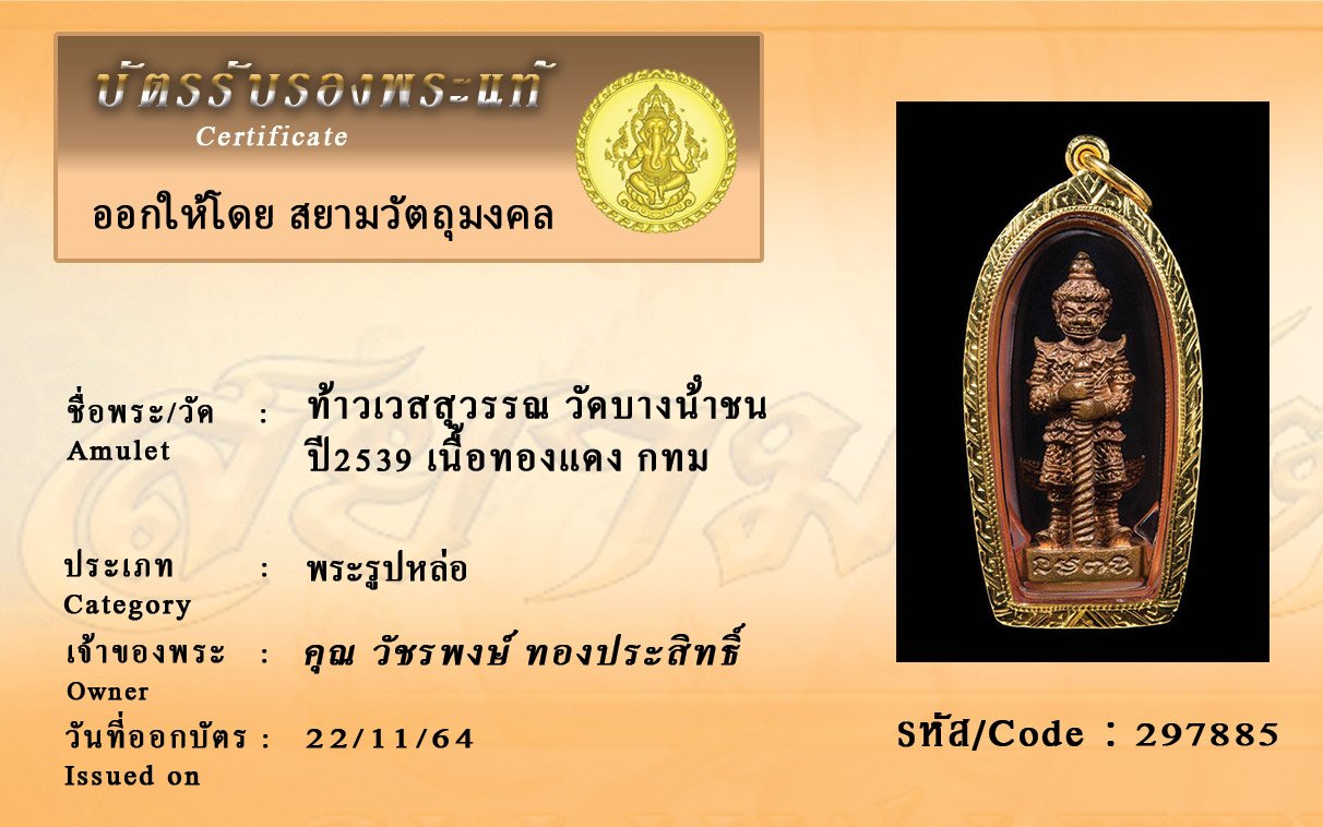 รหัสสินค้า : 297885 ท้าวเวสสุวรรณ วัดบางน้ําชน ปี2539 เนื้อทองแดง กทม