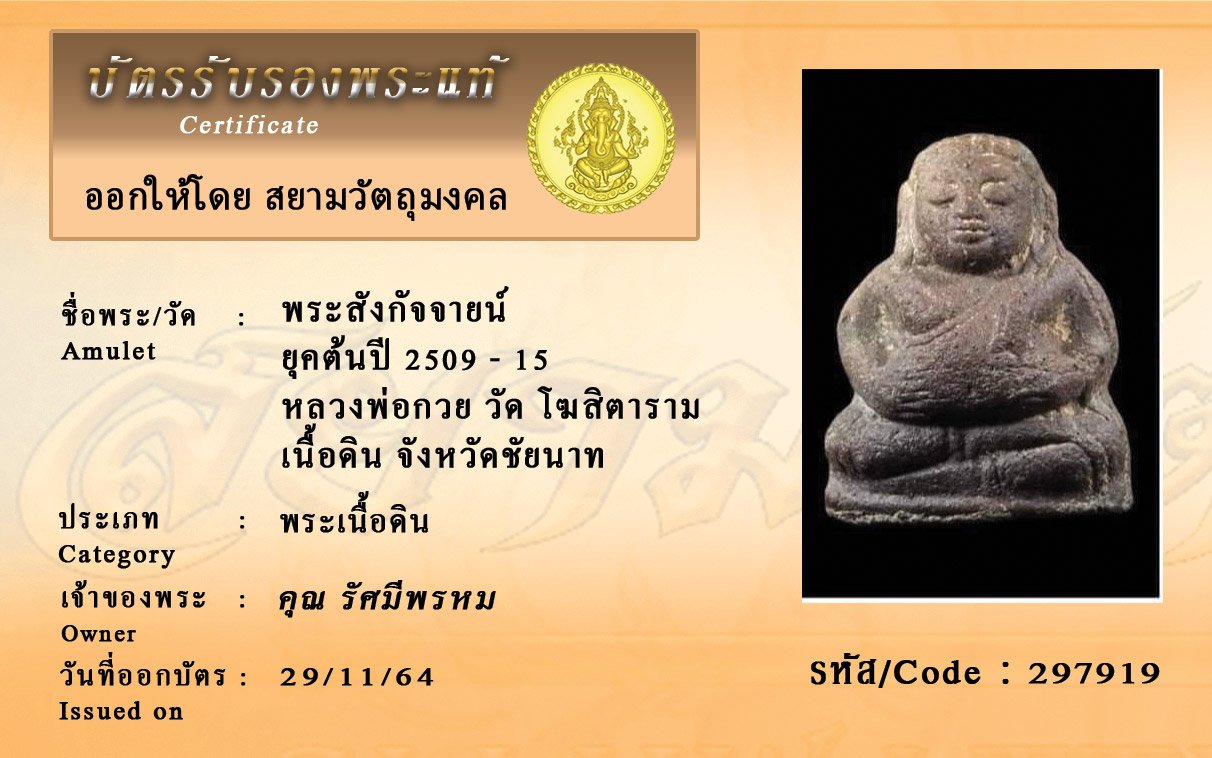 รหัสสินค้า : 297919 พระสังกัจจายน์ ยุคต้นปี 2509 - 15 หลวงพ่อกวย วัด โฆสิตาราม เนื้อดิน จังหวัดชัยนาท