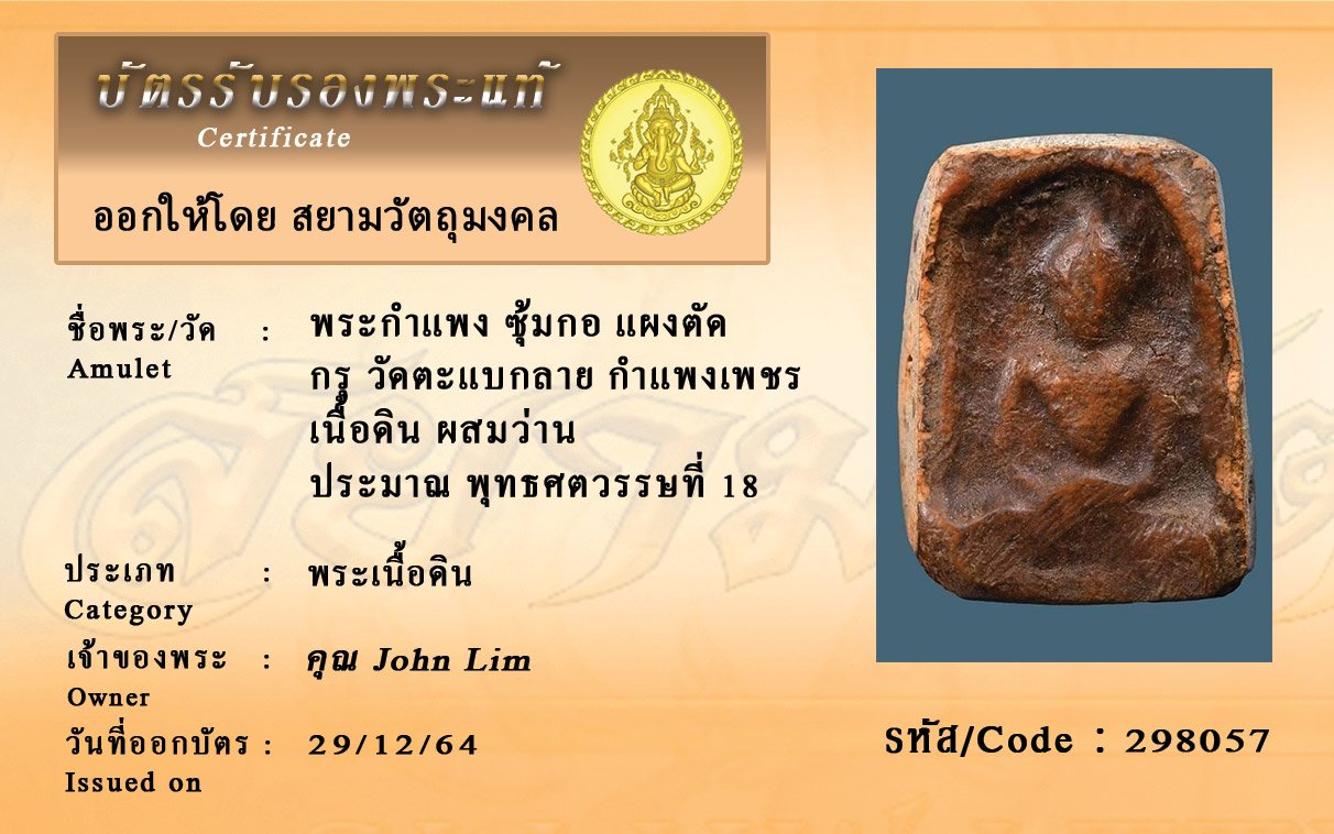 รหัสสินค้า : 298057 พระกำแพง ซุ้มกอ แผงตัด กรุ วัดตะแบกลาย กำแพงเพชร เนื้อดิน ผสมว่าน ประมาณ พุทธศตวรรษที่ 18