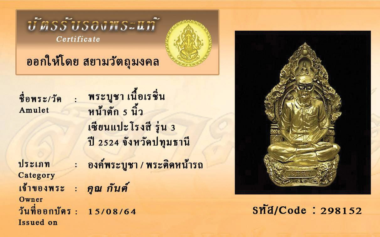 รหัสสินค้า : 298152 พระบูชา เนื้อเรชิ่น หน้าตัก 9 นิ้ว เซียนแปะโรงสี รุ่น 3 ปี 2524 จ.ปทุมธานี
