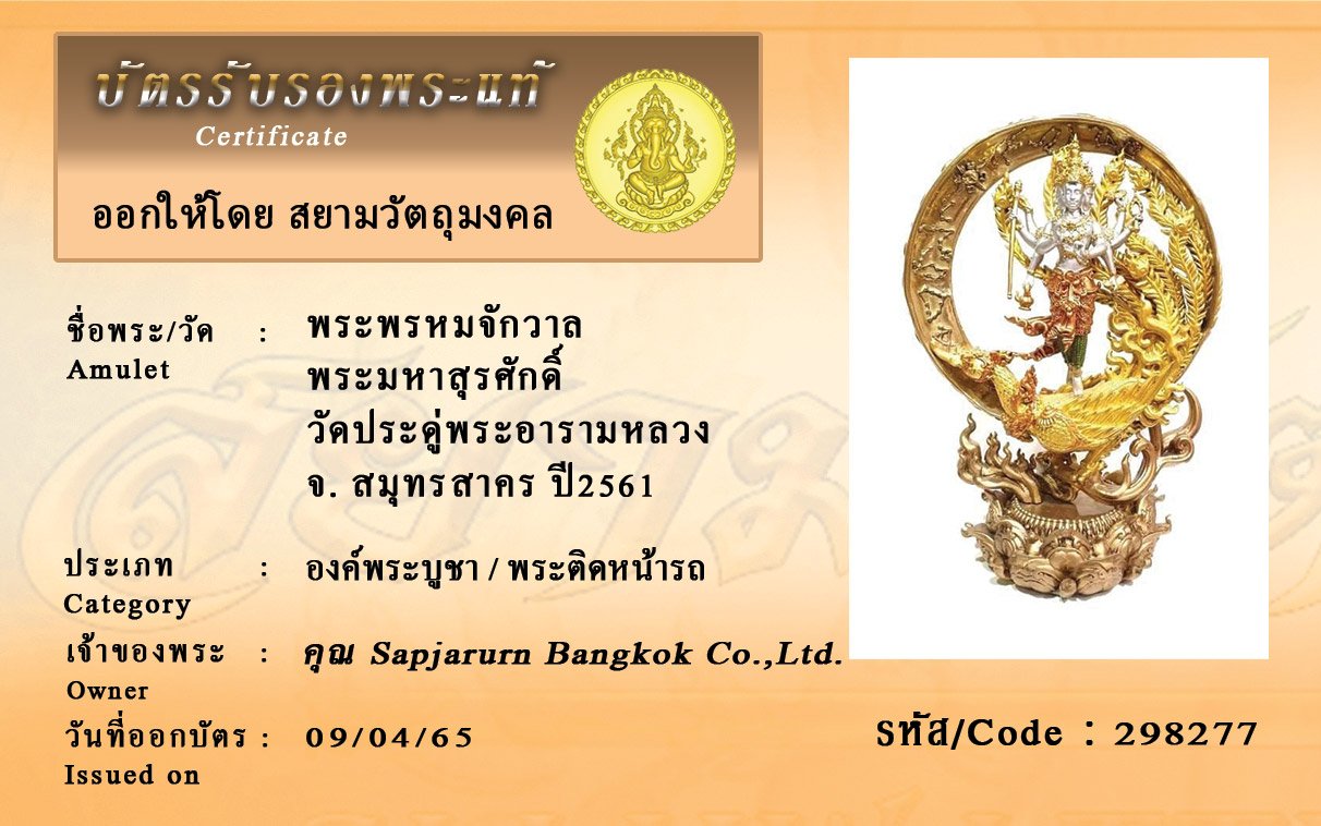 รหัสสินค้า : 298277 พระพรหมจักวาล พระมหาสุรศักดิ์ วัดประดู่พระอารามหลวง จ. สมุทรสาคร ปี2561