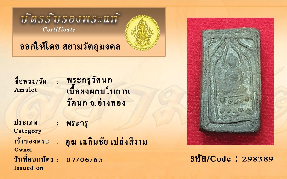 รหัสสินค้า : 298389 พระกรุวัดนก เนื้อผงผสมใบลาน วัดนก จ.อ่างทอง