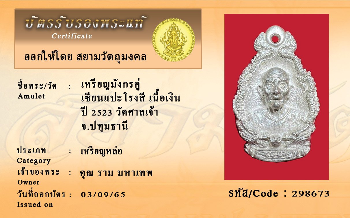 ค้นหาพระ พร้อมบัตรรับรองพระแท้