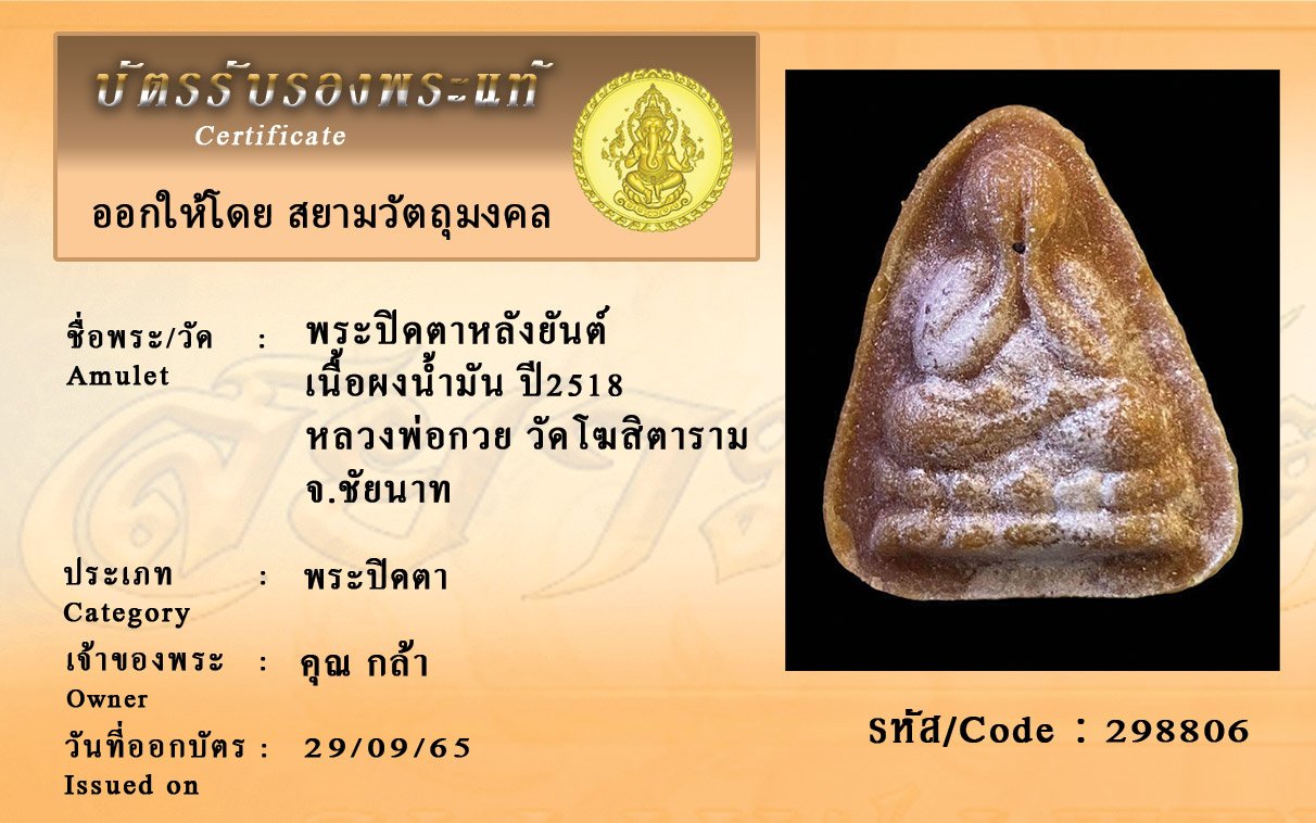 รหัสสินค้า : 298806 พระปิดตาหลังยันต์ เนื้อผงน้ำมัน ปี2518 หลวงพ่อกวย วัดโฆสิตาราม จ.ชัยนาท