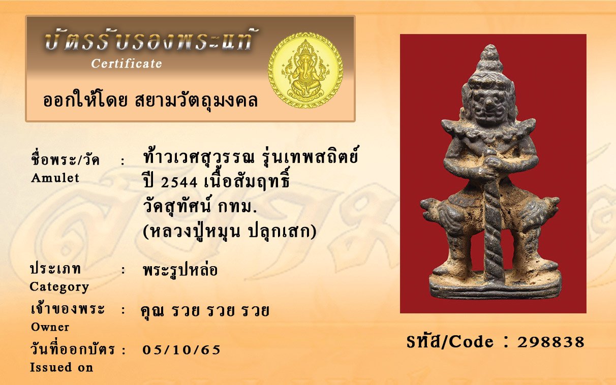 รหัสสินค้า : 298838 ท้าวเวศสุวรรณ รุ่นเทพสถิตย์ ปี 2544 เนื้อสัมฤทธิ์ วัดสุทัศน์ กทม. (หลวงปู่หมุน ปลุกเสก)