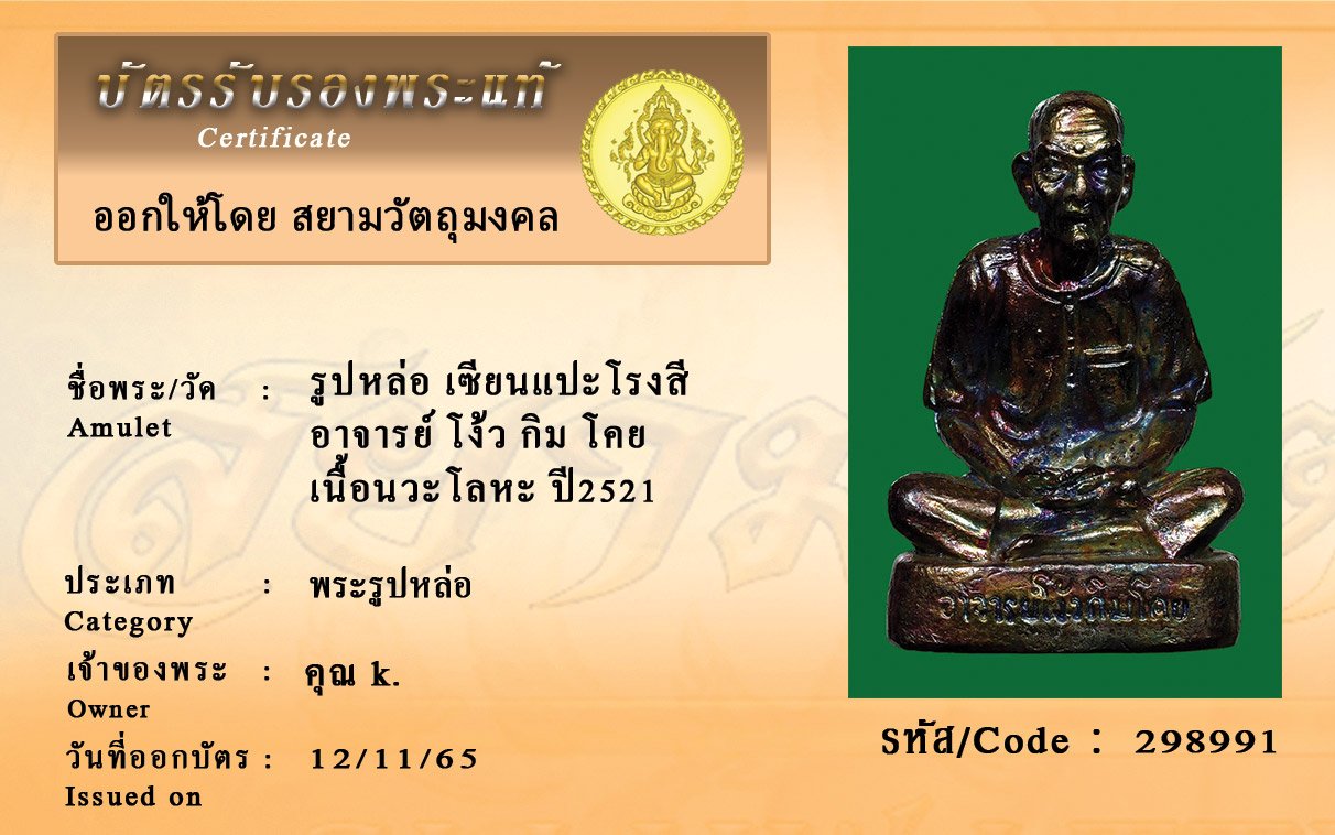 รหัสสินค้า : 298991 รูปหล่อ เซียนแปะโรงสี อาจารย์ โง้ว กิม โคย เนื้อนวะโลหะ ปี2521
