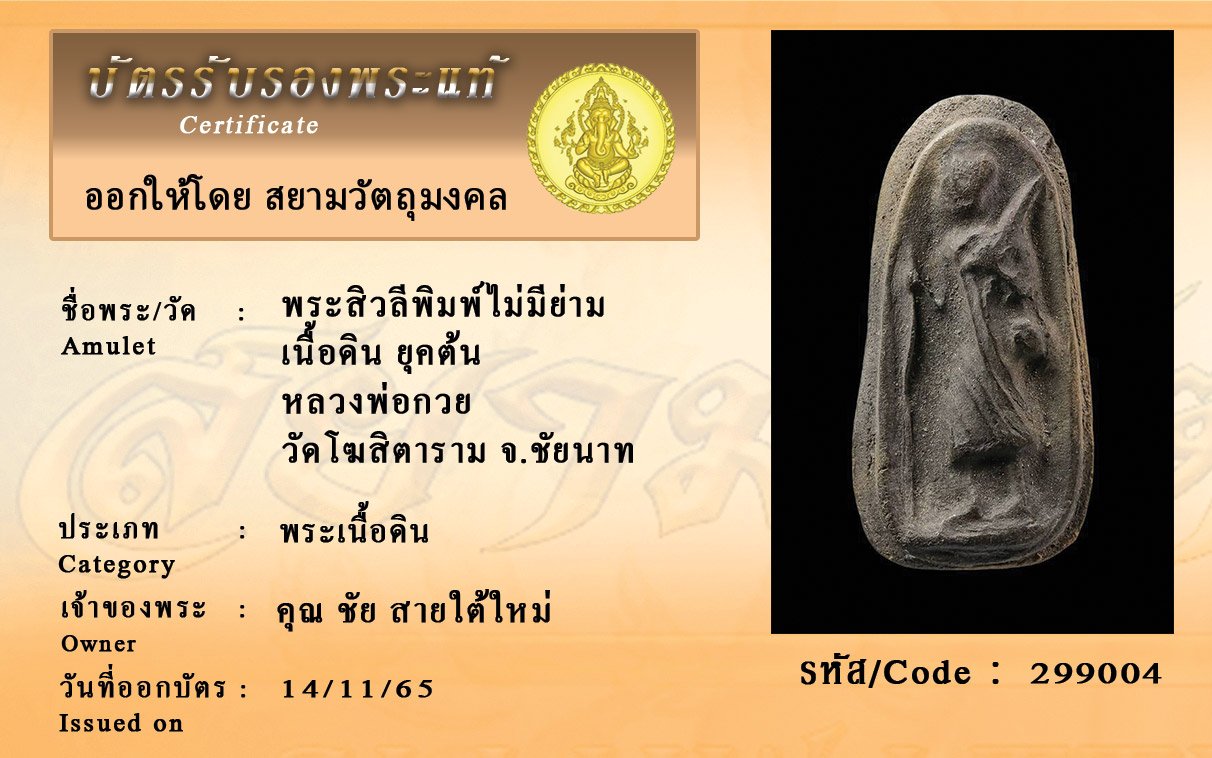 รหัสสินค้า : 299004 พระสิวลีพิมพ์ไม่มีย่าม เนื้อดิน ยุคต้น หลวงพ่อกวย วัดโฆสิตาราม จ.ชัยนาท