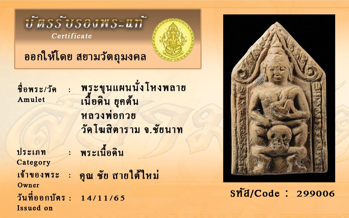 รหัสสินค้า : 299006 พระขุนแผนนั่งโหงพลาย เนื้อดิน ยุคต้น หลวงพ่อกวย วัดโฆสิตาราม จ.ชัยนาท