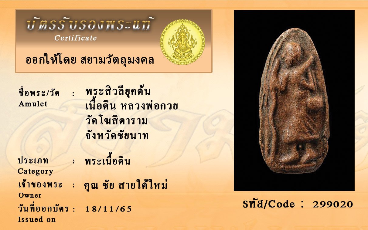 รหัสสินค้า : 299020 พระสิวลียุคต้น เนื้อดิน หลวงพ่อกวย วัดโฆสิตาราม จังหวัดชัยนาท