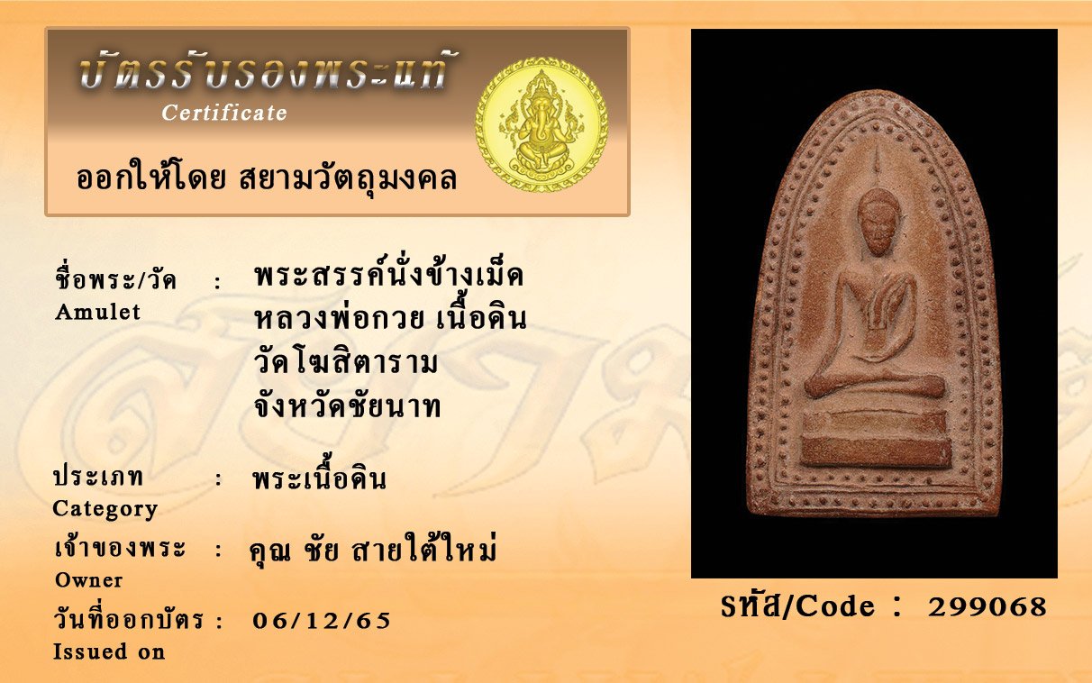 รหัสสินค้า : 299068 พระสรรค์นั่งข้างเม็ด หลวงพ่อกวย เนื้อดิน วัดโฆสิตาราม จังหวัดชัยนาท