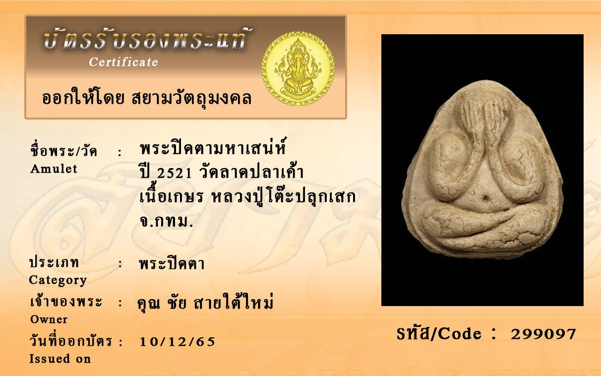 รหัสสินค้า : 299097 พระปิดตามหาเสน่ห์ ปี 2521 วัดลาดปลาเค้า เนื้อเกษร หลวงปู่โต๊ะปลุกเสก จ.กทม.