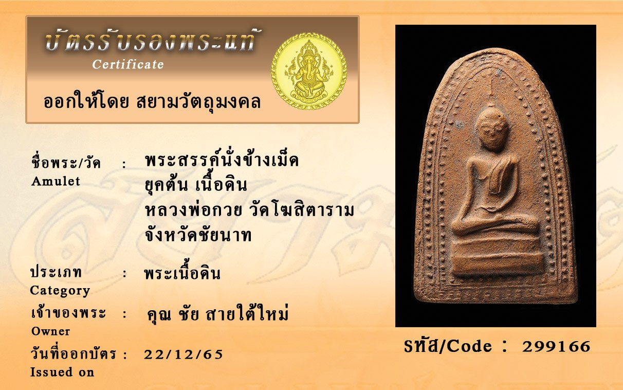 รหัสสินค้า : 299166 พระสรรค์นั่งข้างเม็ด ยุคต้น เนื้อดิน หลวงพ่อกวย วัดโฆสิตาราม จังหวัดชัยนาท