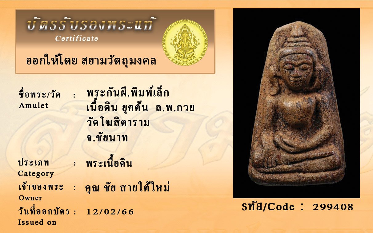 รหัสสินค้า : 299408 พระกันผี.พิมพ์เล็ก เนื้อดิน ยุคต้น ล.พ.กวย วัดโฆสิตาราม จ.ชัยนาท