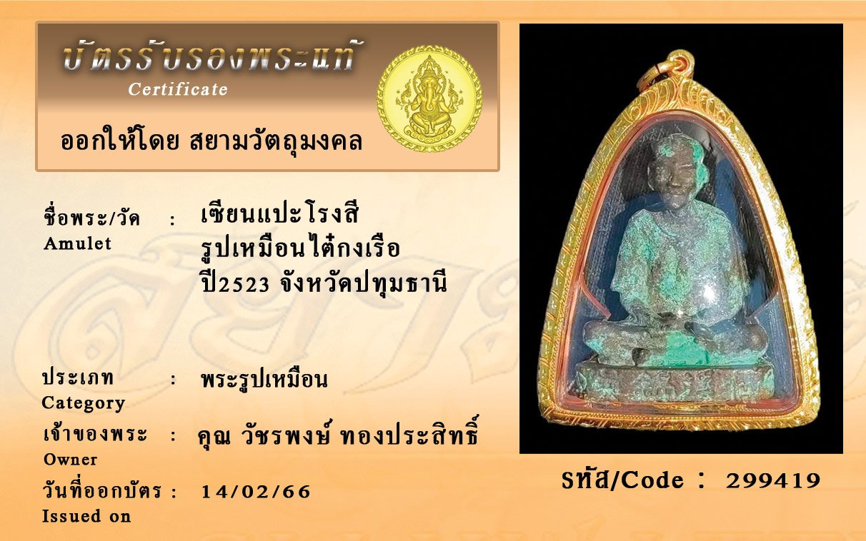 รหัสสินค้า : 299419 เซียนแปะโรงสี รูปเหมือนไต๋กงเรือ ปี2523 จังหวัดปทุมธานี