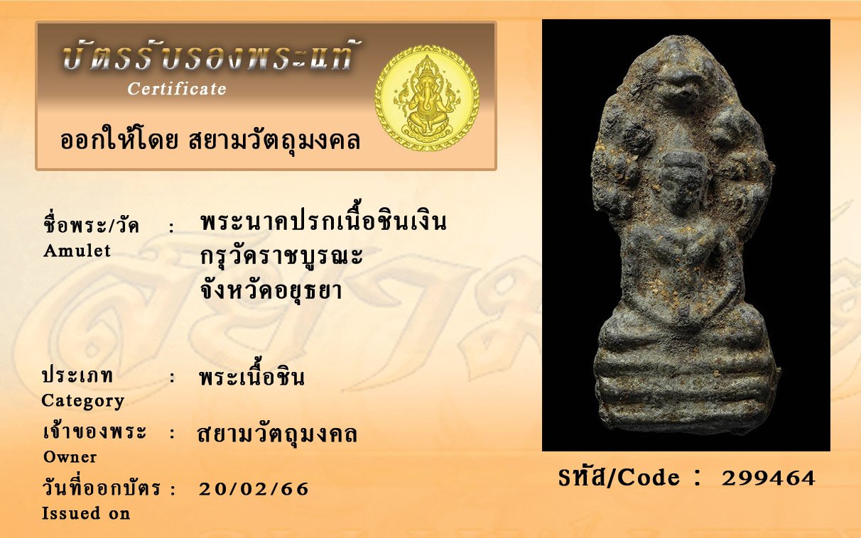 รหัสสินค้า : 299464 พระนาคปรกเนื้อชินเงิน กรุวัดราชบูรณะ จังหวัดอยุธยา