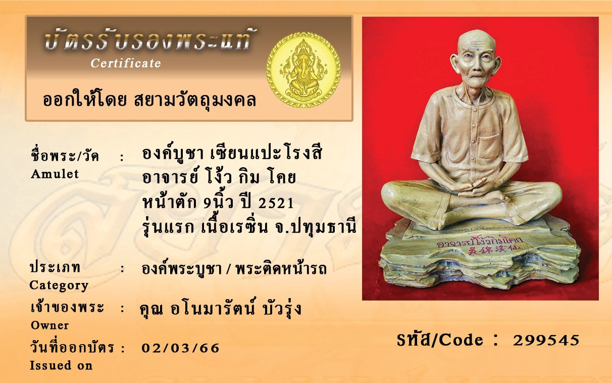 รหัสสินค้า : 299545 องค์บูชา เซียนแปะโรงสี อาจารย์ โง้ว กิม โคย หน้าตัก 9นิ้ว ปี 2521 รุ่นแรก เนื้อเรซิ่น จ.ปทุมธานี