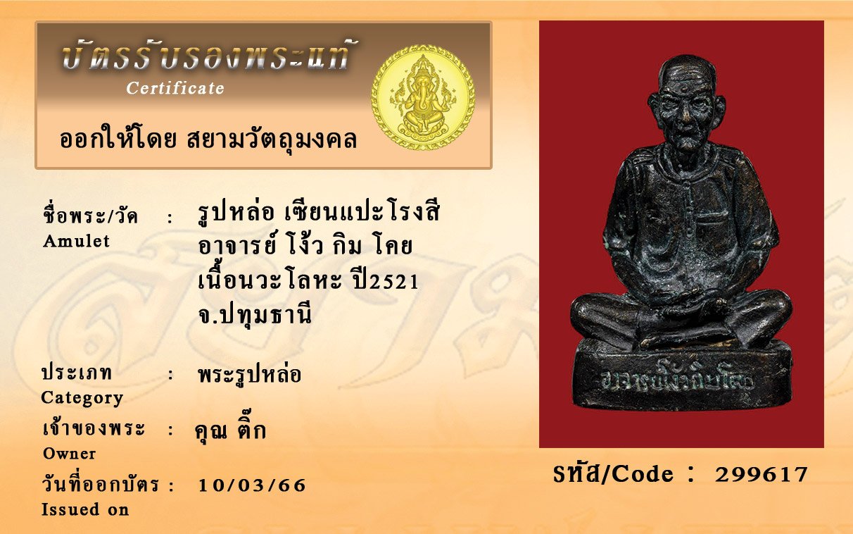 รหัสสินค้า : 299617 รูปหล่อ เซียนแปะโรงสี อาจารย์ โง้ว กิม โคย เนื้อนวะโลหะ ปี2521 จ.ปทุมธานี