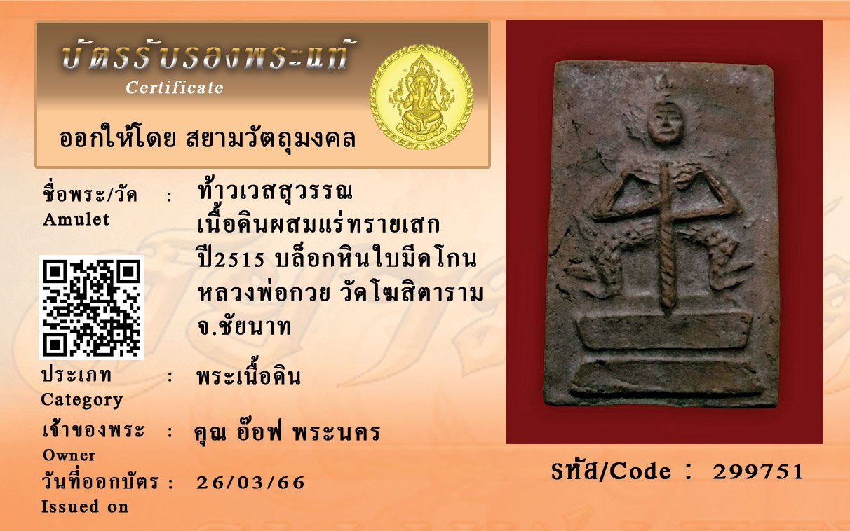 รหัสสินค้า : 299751 ท้าวเวสสุวรรณ เนื้อดินผสมแร่ทรายเสก ปี2515 บล็อกหินใบมีดโกน หลวงพ่อกวย วัดโฆสิตาราม จ.ชัยนาท