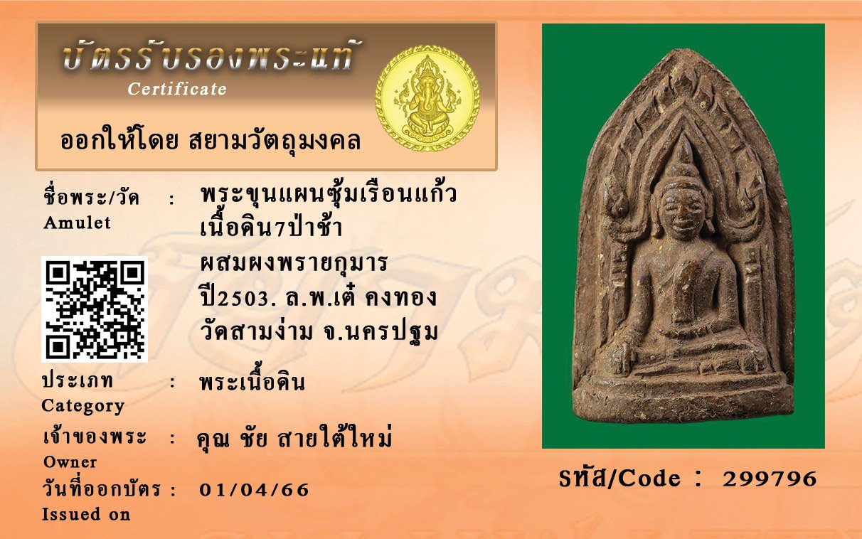 รหัสสินค้า : 299796 พระขุนแผนซุ้มเรือนแก้ว เนื้อดิน7ป่าช้า ผสมผงพรายกุมาร ปี2503. ล.พ.เต๋ คงทอง วัดสามง่าม จ.นครปฐม
