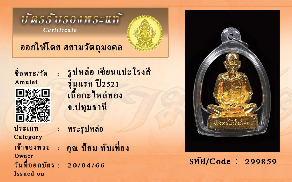 รหัสสินค้า : 299859 รูปหล่อ เซียนแปะโรงสี รุ่นแรก ปี2521 เนื้อกะไหล่ทอง จ.ปทุมธานี