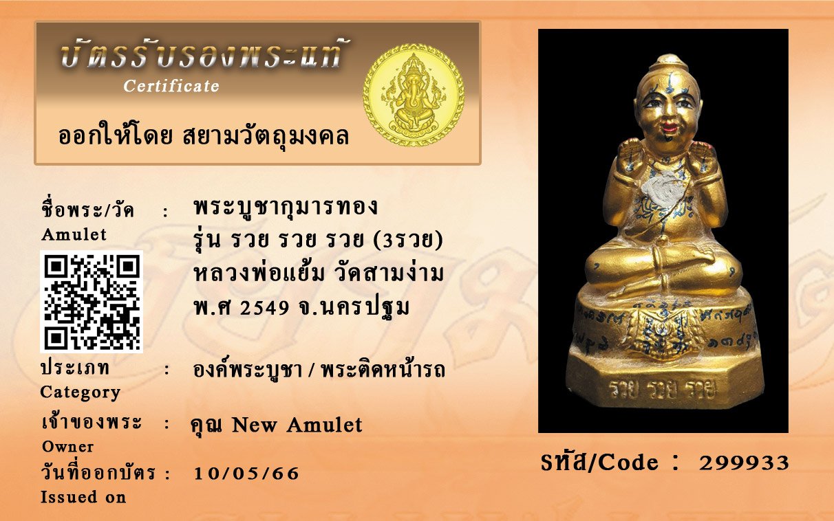 รหัสสินค้า : 299933 พระบูชากุมารทอง รุ่น รวย รวย รวย (3รวย) หลวงพ่อแย้ม วัดสามง่าม พ.ศ 2549 จ.นครปฐม