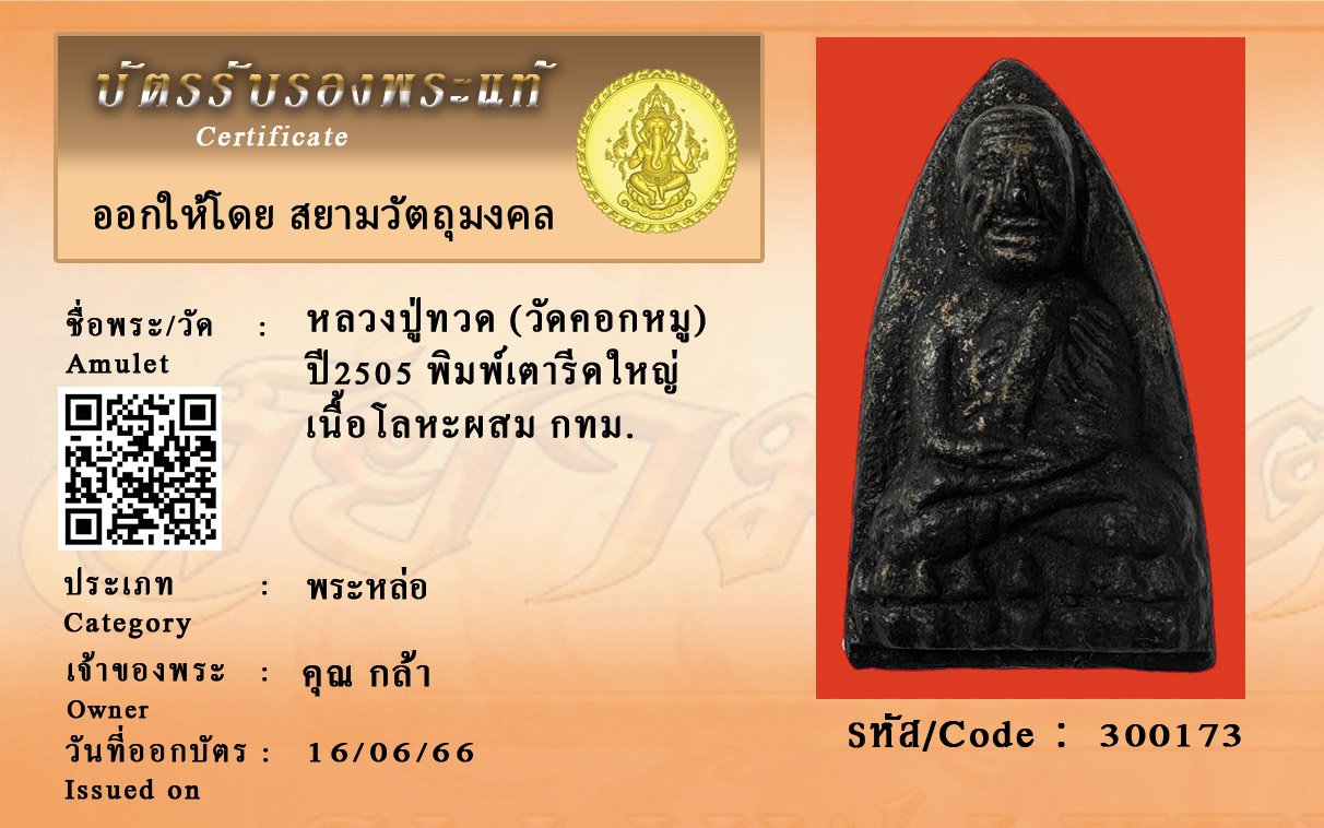รหัสสินค้า : 300173 หลวงปู่ทวด (วัดคอกหมู) ปี2505 พิมพ์เตารีดใหญ่ เนื้อโลหะผสม กทม.