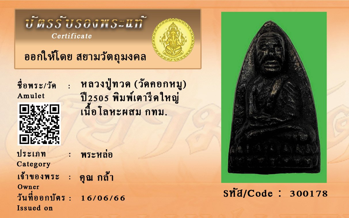 รหัสสินค้า : 300178 หลวงปู่ทวด (วัดคอกหมู) ปี2505 พิมพ์เตารีดใหญ่ เนื้อโลหะผสม กทม.