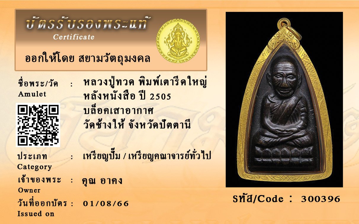 รหัสสินค้า : 300396 หลวงปู่ทวด พิมพ์เตารีดใหญ่ หลังหนังสือ ปี 2505 บล็อคเสาอากาศ วัดช้างให้ จังหวัดปัตตานี