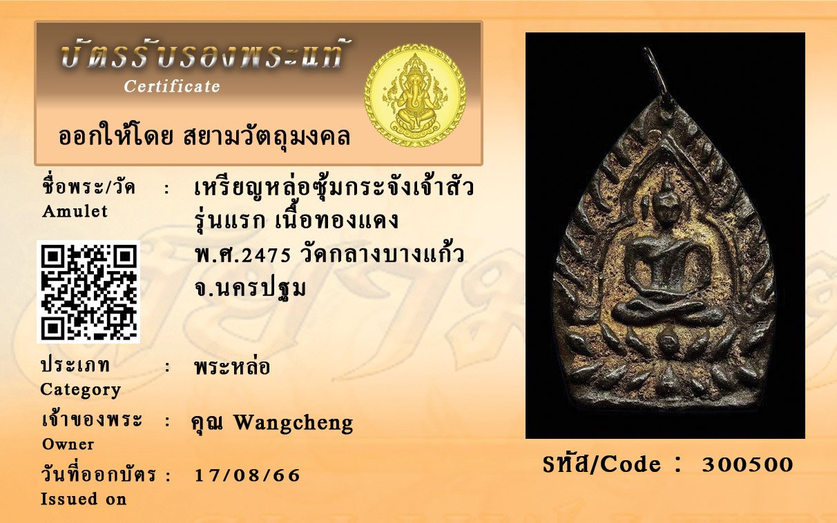 รหัสสินค้า : 300500 เหรียญหล่อซุ้มกระจังเจ้าสัว รุ่นแรก เนื้อทองแดง พ.ศ.2475 วัดกลางบางแก้ว จ.นครปฐม