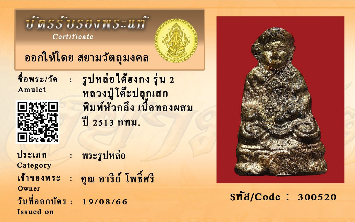 รหัสสินค้า : 300520 รูปหล่อไต้ฮงกง รุ่น 2 หลวงปู่โต๊ะปลุกเสก พิมพ์หัวกลึง เนื้อทองผสม ปี 2513 กทม.