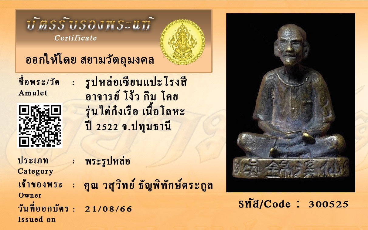 รหัสสินค้า : 300525 รูปหล่อเซียนแปะโรงสี อาจารย์ โง้ว กิม โคย รุ่นไต่ก๋งเรือ เนื้อโลหะ ปี 2522 จ.ปทุมธานี