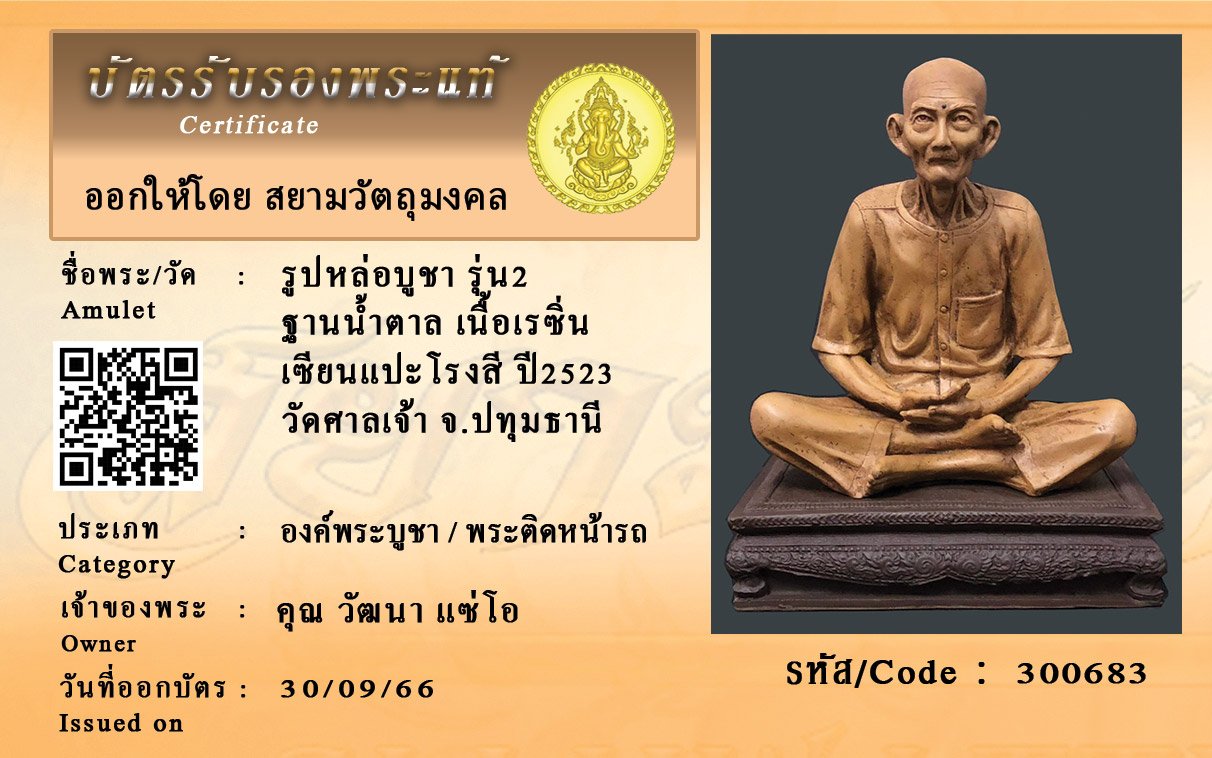 รหัสสินค้า : 300683 รูปหล่อบูชา รุ่น2 ฐานน้ำตาล เนื้อเรซิ่น เซียนแปะโรงสี ปี2523 วัดศาลเจ้า จ.ปทุมธานี