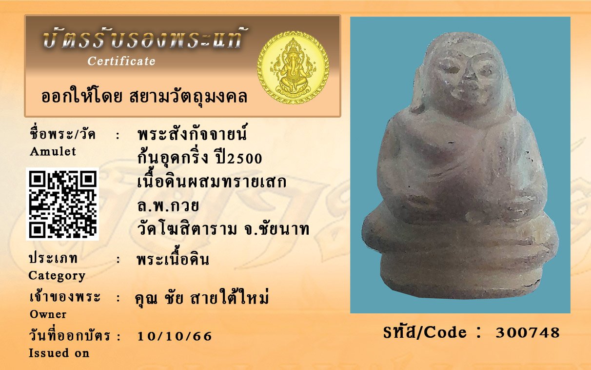 รหัสสินค้า : 300748 พระสังกัจจายน์ ก้นอุดกริ่ง ปี2500 เนื้อดินผสมทรายเสก ล.พ.กวย วัดโฆสิตาราม จ.ชัยนาท