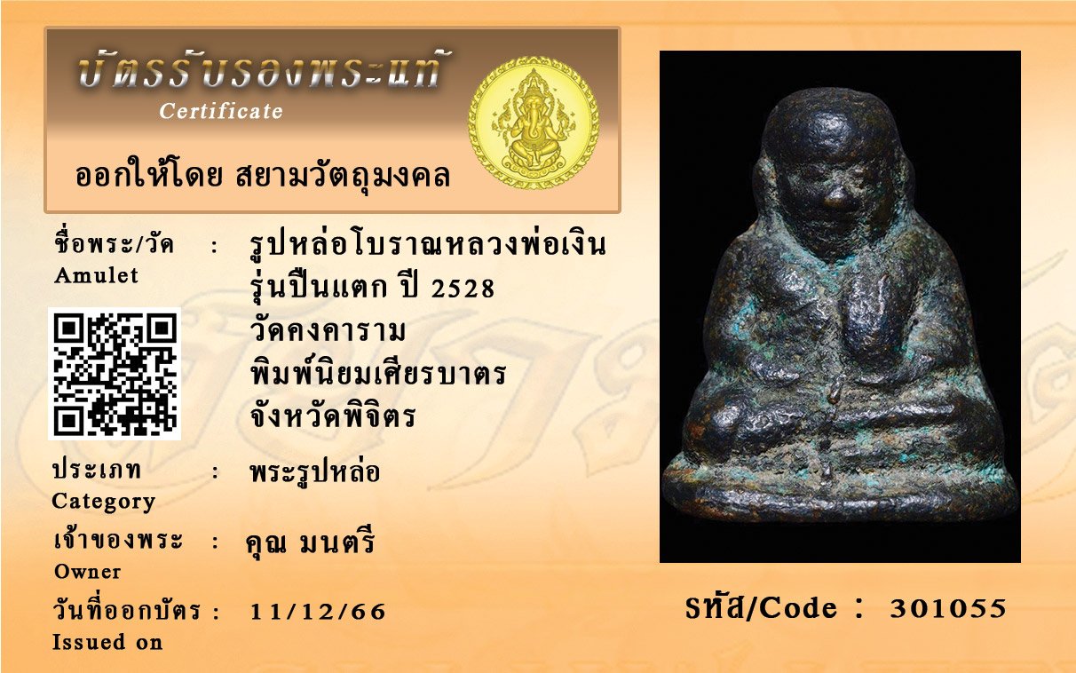 รหัสสินค้า : 301055 รูปหล่อโบราณหลวงพ่อเงิน รุ่นปืนแตก ปี 2528 วัดคงคาราม พิมพ์นิยมเศียรบาตร จังหวัดพิจิตร