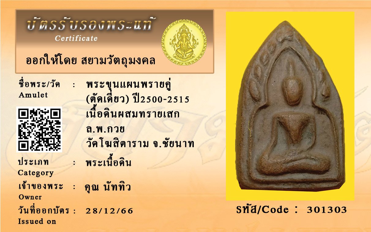 รหัสสินค้า : 301303 พระขุนแผนพรายคู่(ตัดเดี่ยว) ปี2500-2515 เนื้อดินผสมทรายเสก ล.พ.กวย วัดโฆสิตาราม จ.ชัยนาท