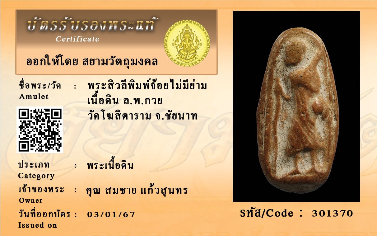 รหัสสินค้า : 301370 พระสิวลีพิมพ์จ้อยไม่มีย่าม เนื้อดิน ล.พ.กวย วัดโฆสิตาราม จ.ชัยนาท